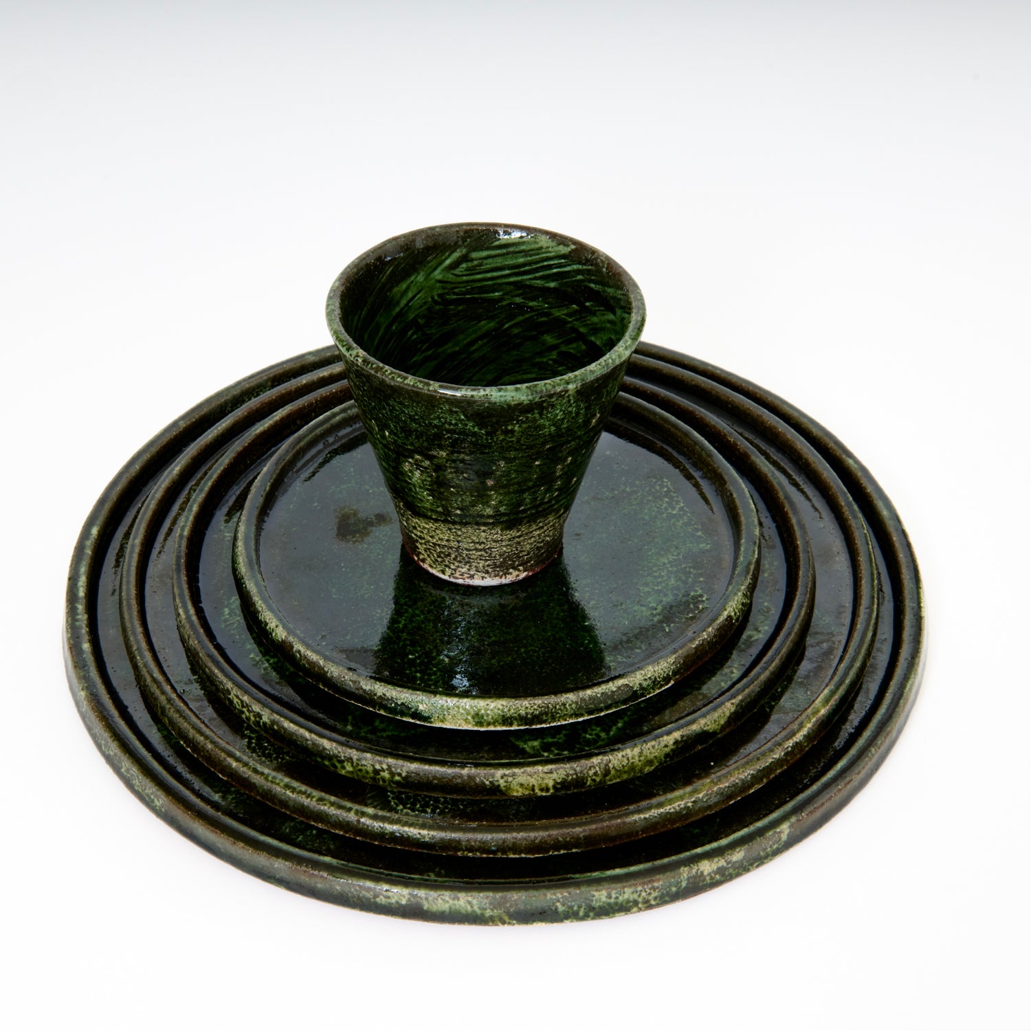 Defined by the distinctive green of Oribe ware, this collection is sure to stand out as the centerpiece of any table